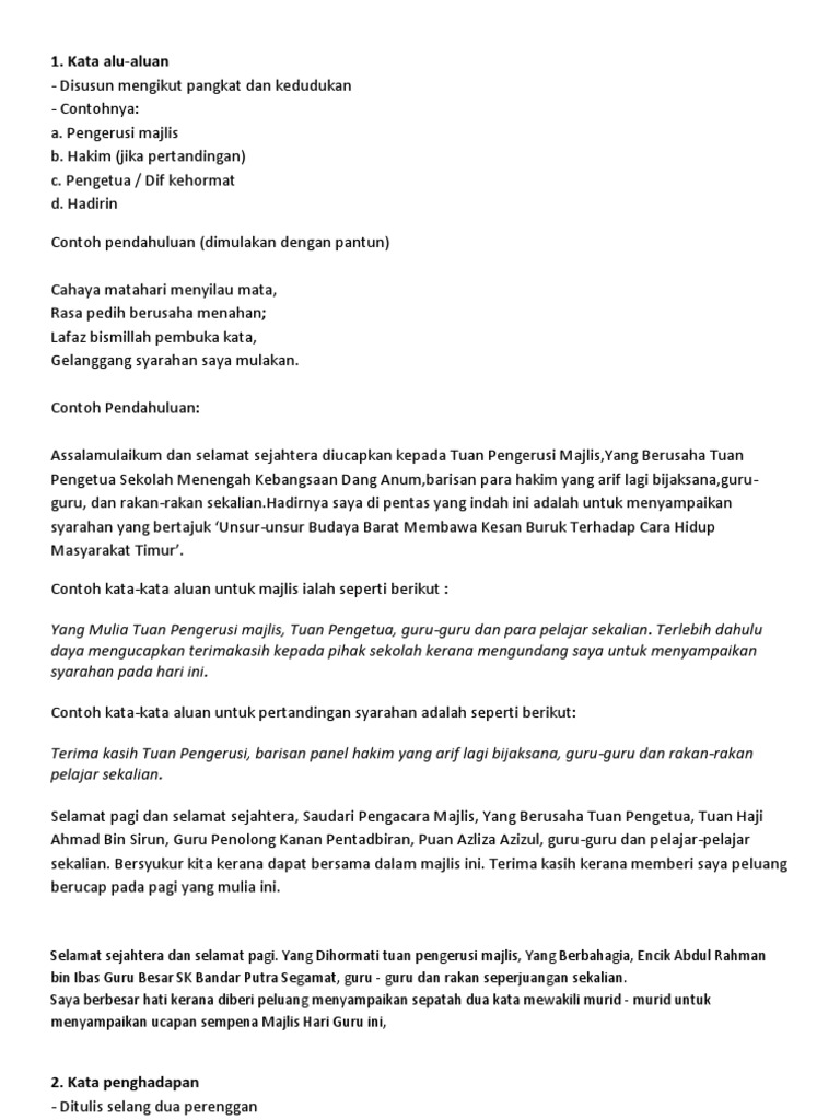Maka dari itu perlu persiapan yang matang dalam menyampaikan pidato. Contoh Ayat menggunakan Perkataan cerpen dalam bahasa Melayu. 93 Contoh Penutup Pidato Memuji Allah.